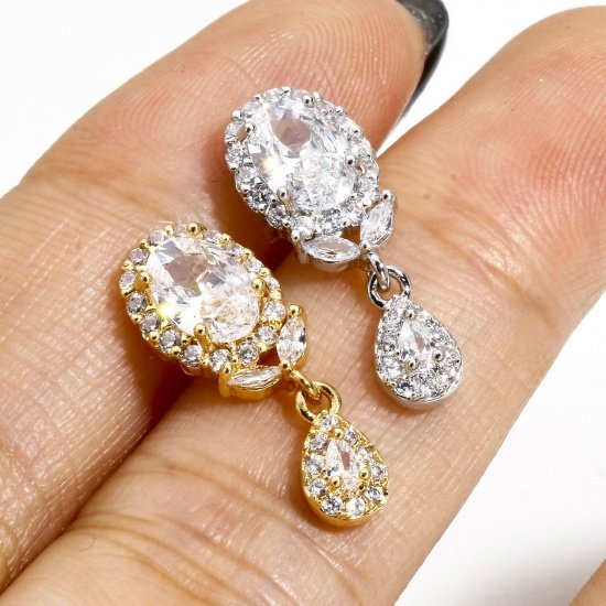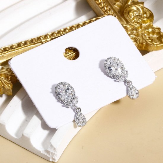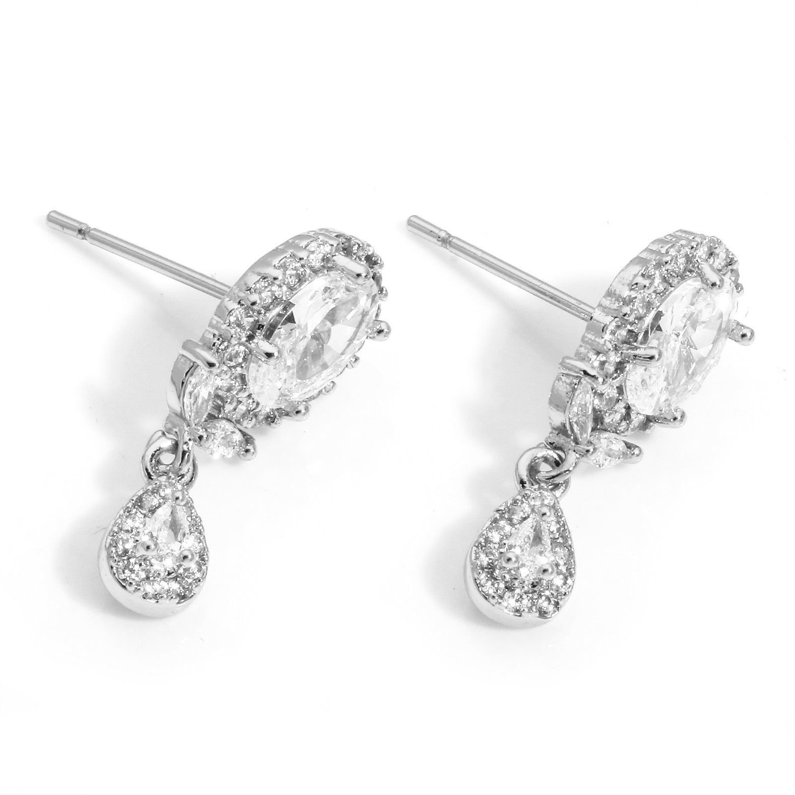 Pendientes de circonita cúbica chapado en platino auténtico y ecológicos, 20 mm x 7,5 mm