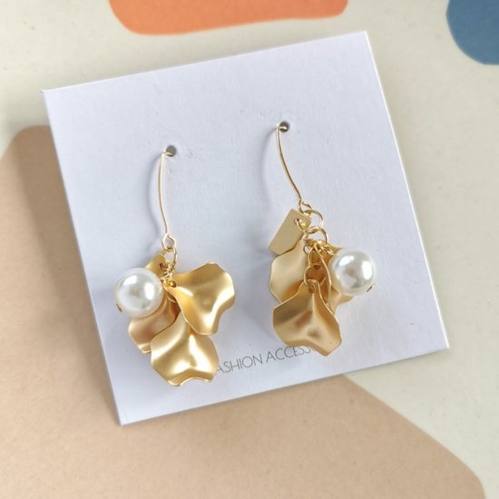 Pendiente en oro blanco, imitación perla 51mm x 15mm