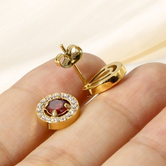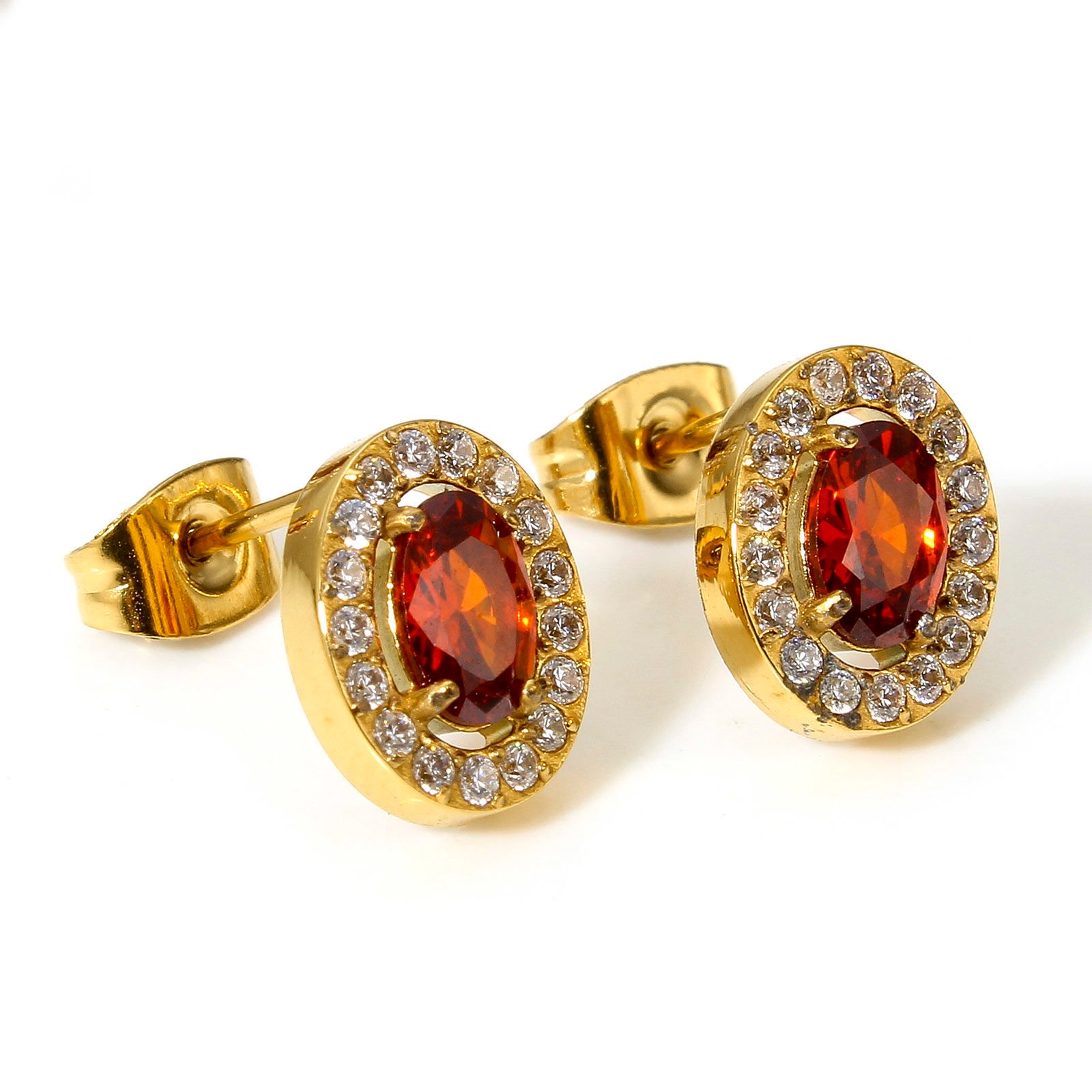 chapados en oro de 18 quilates, circonita transparente ovalada roja