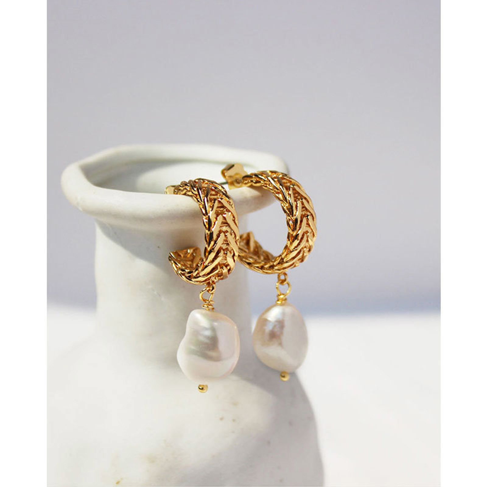 La calidad de estos pendiente es wow barrocos de cobre y perlas de Color dorado de 18 quilates Delicados, hipoalergénicos 4cm x 1cm