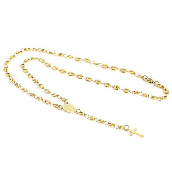 Cadena de Acero Inoxidable Chapado en Oro de 18K Cruz Virgen 50cm longitud